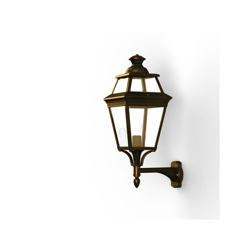 Applique montante PLACE DES VOSGES 3, en aluminium, E27, IP44, classe 1, diffuseurs verre clair. Finition Patine dorée 009. Garantie 25 ans anticorrosion sur l'