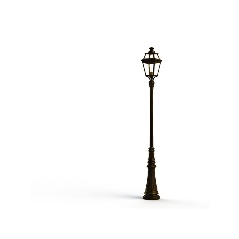 Lampadaire 1 tête PLACE DES VOSGES 3, en aluminium, E27, IP44, classe 1, diffuseurs verre clair. Finition Patine dorée 009. Garantie 25 ans anticorrosion sur l'