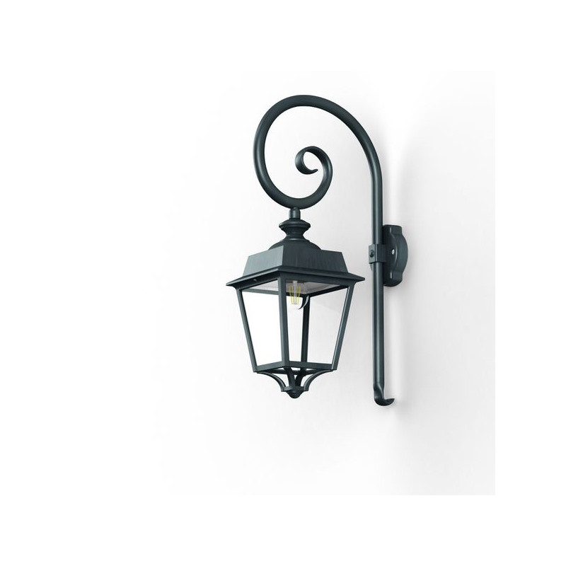 Description: Applique crosse PLACE DES VOSGES EVOLUTION en aluminium, E27, IP65, classe 1, bloc diffuseur méthacrylate clair. Finition Patine vert de gris 008. Garantie 25 a