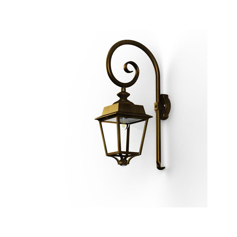 Applique crosse PLACE DES VOSGES EVOLUTION détection, en aluminium, E27, IP65, classe 1, bloc diffuseur méthacrylate clair. Finition Patine dorée 009. Garantie
