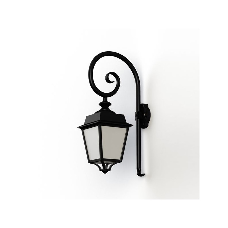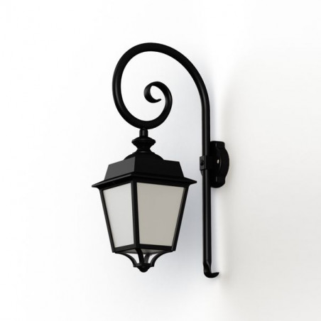 Description: Applique crosse PLACE DES VOSGES EVOLUTION en aluminium, E27, IP65, classe 1, bloc diffuseur méthacrylate opale. Teinte RAL 9005 Noir foncé 000. Garantie 25 ans