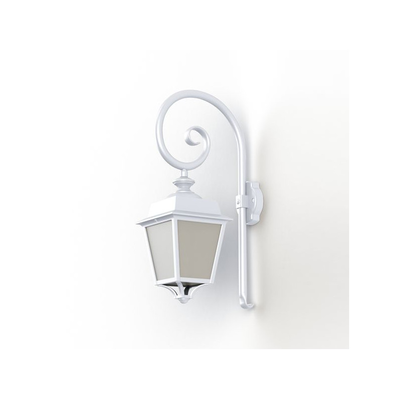 Description: Applique crosse PLACE DES VOSGES EVOLUTION en aluminium, E27, IP65, classe 1, bloc diffuseur méthacrylate opale. Teinte Blanc 001. Garantie 25 ans anticorrosion