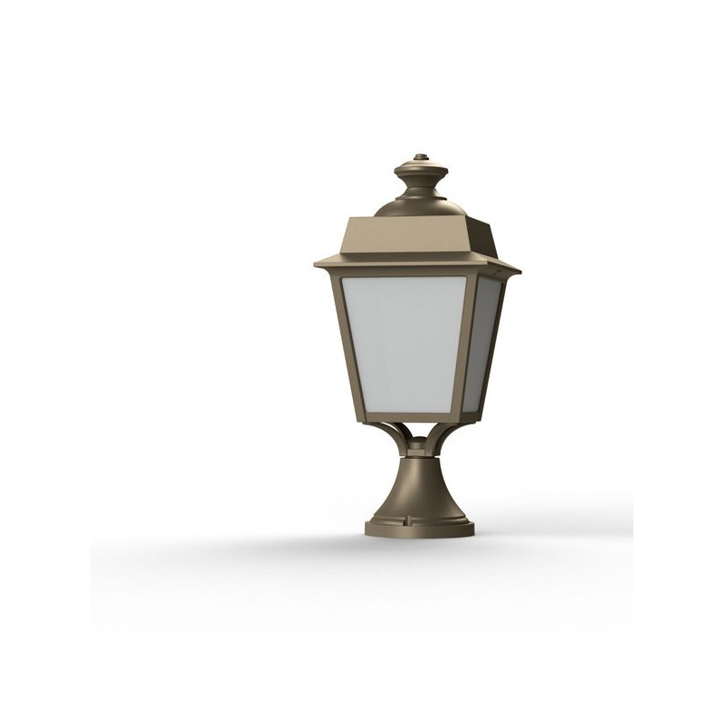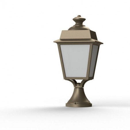 Borne PLACE DES VOSGES EVOLUTION en aluminium, hauteur 484mm, E27, IP65, classe 1, bloc diffuseur méthacrylate opale. Teinte Grès 054. Garantie 25 ans anticorro
