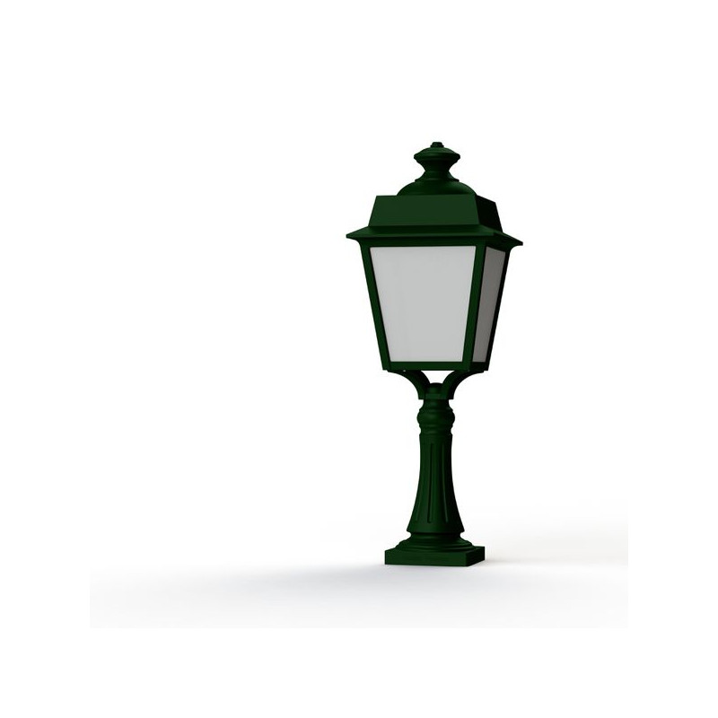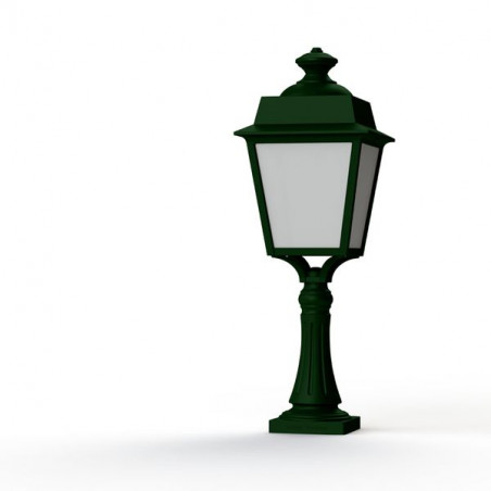 Borne PLACE DES VOSGES EVOLUTION en aluminium, hauteur 627mm, E27, IP65, classe 1, bloc diffuseur méthacrylate opale. Teinte RAL 6009 Vert anglais 019. Garantie