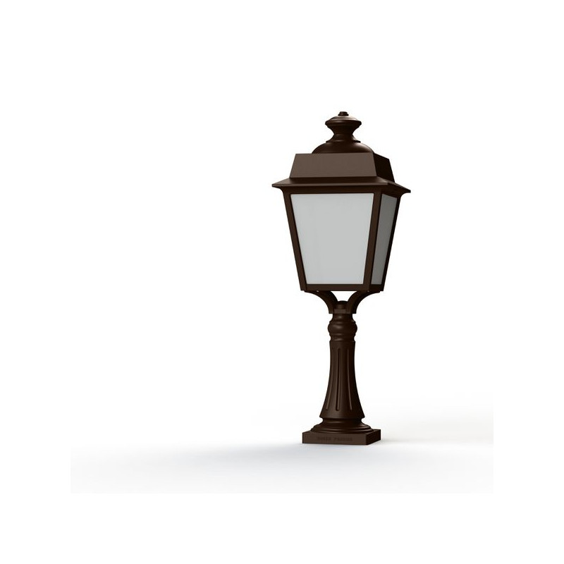 Description: Borne PLACE DES VOSGES EVOLUTION en aluminium, hauteur 627mm, E27, IP65, classe 1, bloc diffuseur méthacrylate opale. Teinte Rouille 046. Garantie 25 ans antico