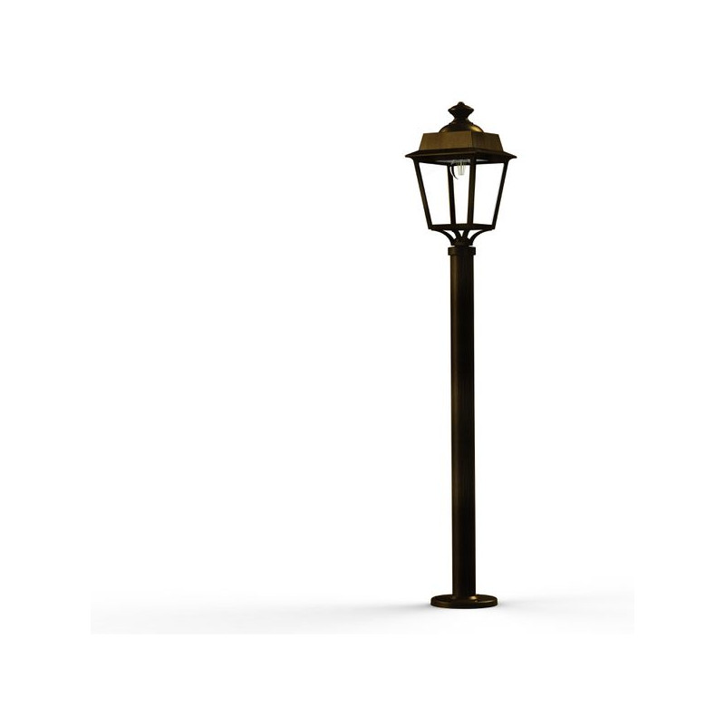 Description: Borne PLACE DES VOSGES EVOLUTION en aluminium, hauteur 1350mm, E27, IP65, classe 1, bloc diffuseur méthacrylate clair. Finition Patine dorée 009. Garantie 25 an