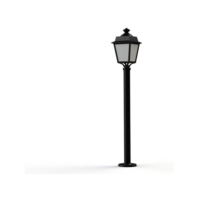 Description: Borne PLACE DES VOSGES EVOLUTION en aluminium, hauteur 1350mm, E27, IP65, classe 1, bloc diffuseur méthacrylate opale. Teinte RAL 9005 Noir foncé 000. Garantie