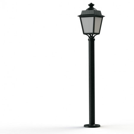 Description: Borne PLACE DES VOSGES EVOLUTION en aluminium, hauteur 1350mm, E27, IP65, classe 1, bloc diffuseur méthacrylate opale. Finition Patine vert de gris 008. Garanti