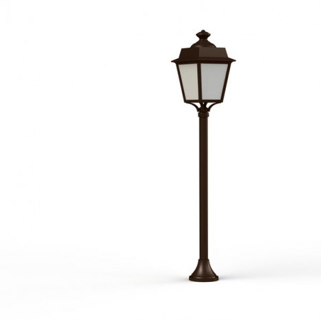 Borne PLACE DES VOSGES EVOLUTION en aluminium, hauteur 1180mm, E27, IP65, classe 1, bloc diffuseur méthacrylate opale. Teinte Rouille 046. Garantie 25 ans antic