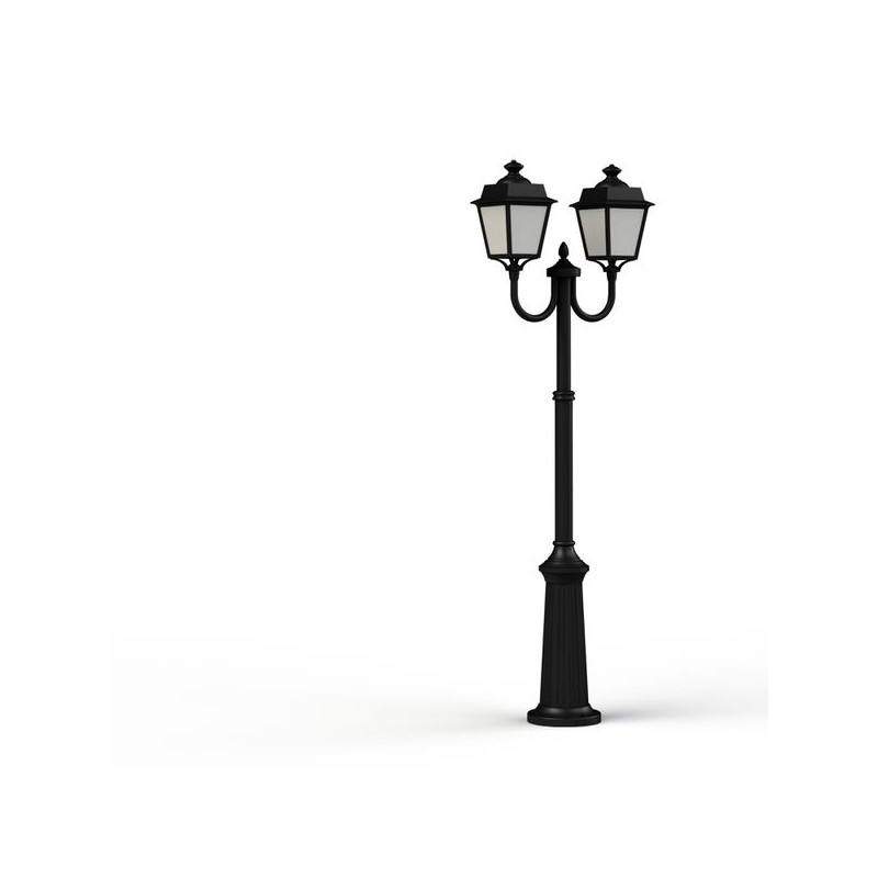 Lampadaire 2 têtes PLACE DES VOSGES EVOLUTION en aluminium, télescopique, E27, IP65, classe 1, blocs diffuseurs méthacrylate opale. Teinte RAL 9005 Noir foncé 0