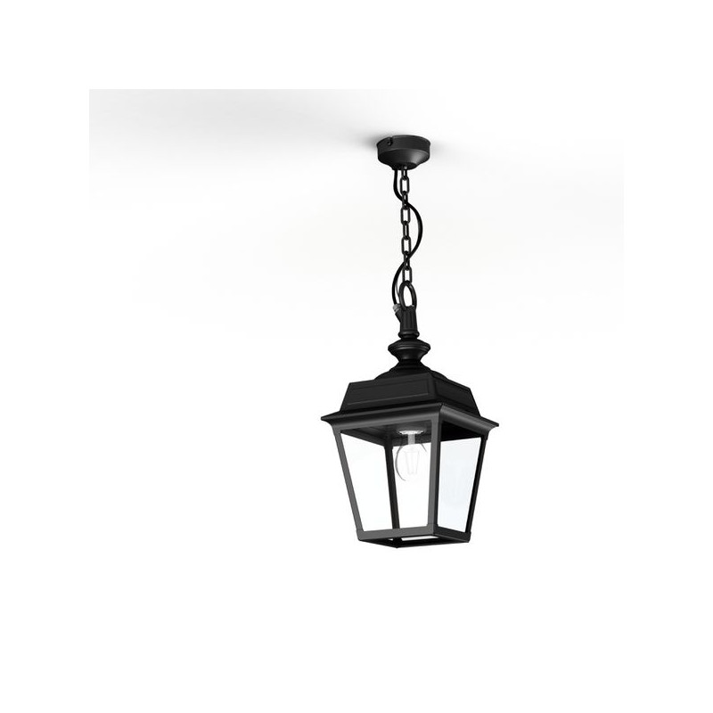 Suspension chaîne PLACE DES VOSGES TRADITION en aluminium, E27, IP44, classe 1, diffuseurs verre clair. Teinte RAL 9005 Noir foncé 000. Garantie 25 ans anticorr