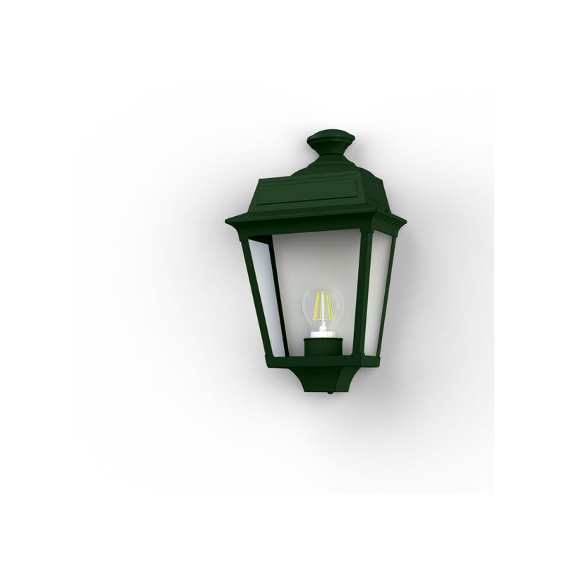 Description: Applique PLACE DES VOSGES TRADITION en aluminium, E27, IP44, classe 1, diffuseurs verre clair. Teinte RAL 6009 Vert anglais 019. Garantie 25 ans anticorrosion s