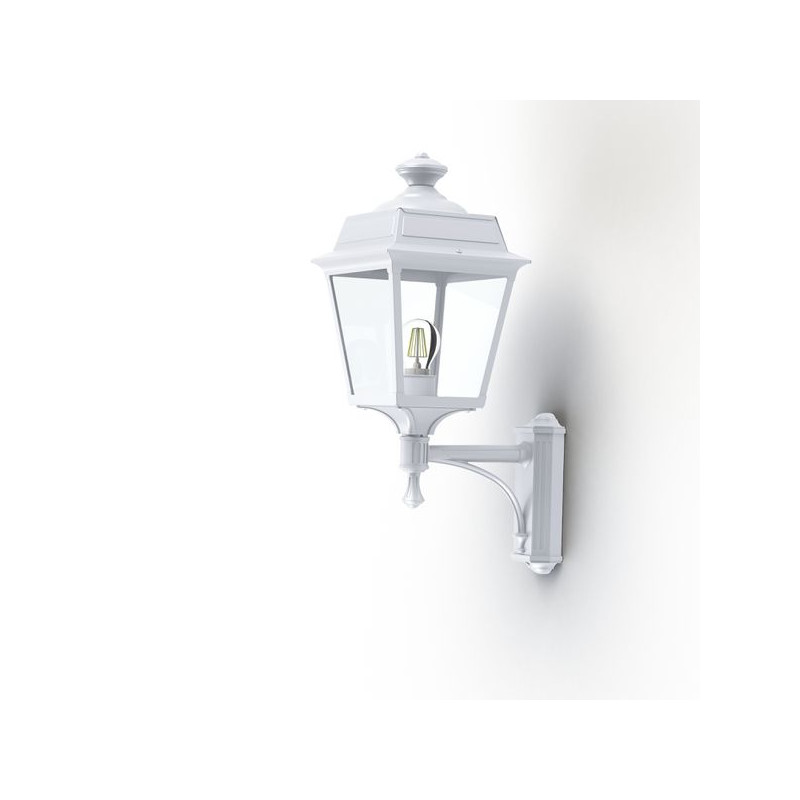 Description: Applique montante PLACE DES VOSGES TRADITION en aluminium, E27, IP44, classe 1, diffuseurs verre clair. Teinte Blanc 001. Garantie 25 ans anticorrosion sur l'al