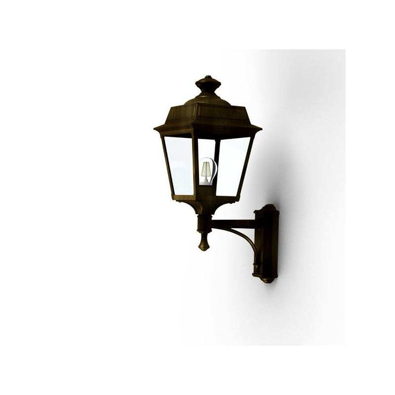 Description: Applique montante PLACE DES VOSGES TRADITION en aluminium, E27, IP44, classe 1, diffuseurs verre clair. Finition Patine dorée 009. Garantie 25 ans anticorrosion