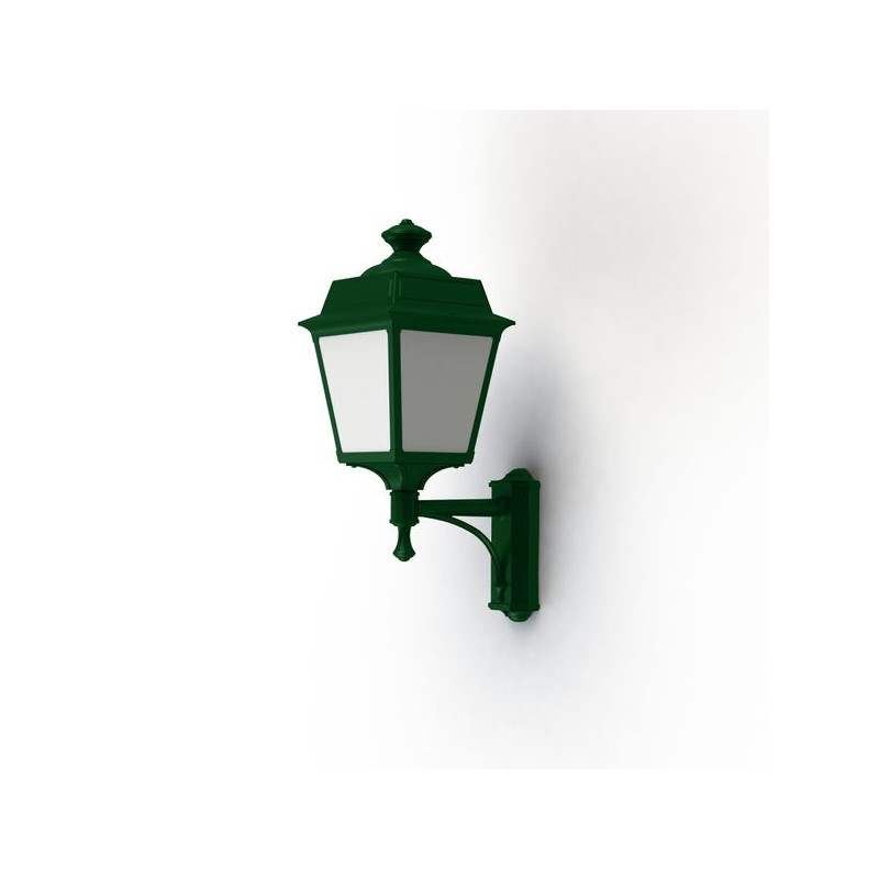 Description: Applique montante PLACE DES VOSGES TRADITION en aluminium, E27, IP44, classe 1, diffuseurs verre opale. Teinte RAL 6009 Vert sapin 067. Garantie 25 ans anticorr