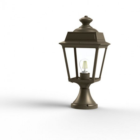 Borne PLACE DES VOSGES TRADITION en aluminium, hauteur 473mm, E27, IP44, classe 1, diffuseurs verre clair. Teinte Grès 054. Garantie 25 ans anticorrosion sur l'