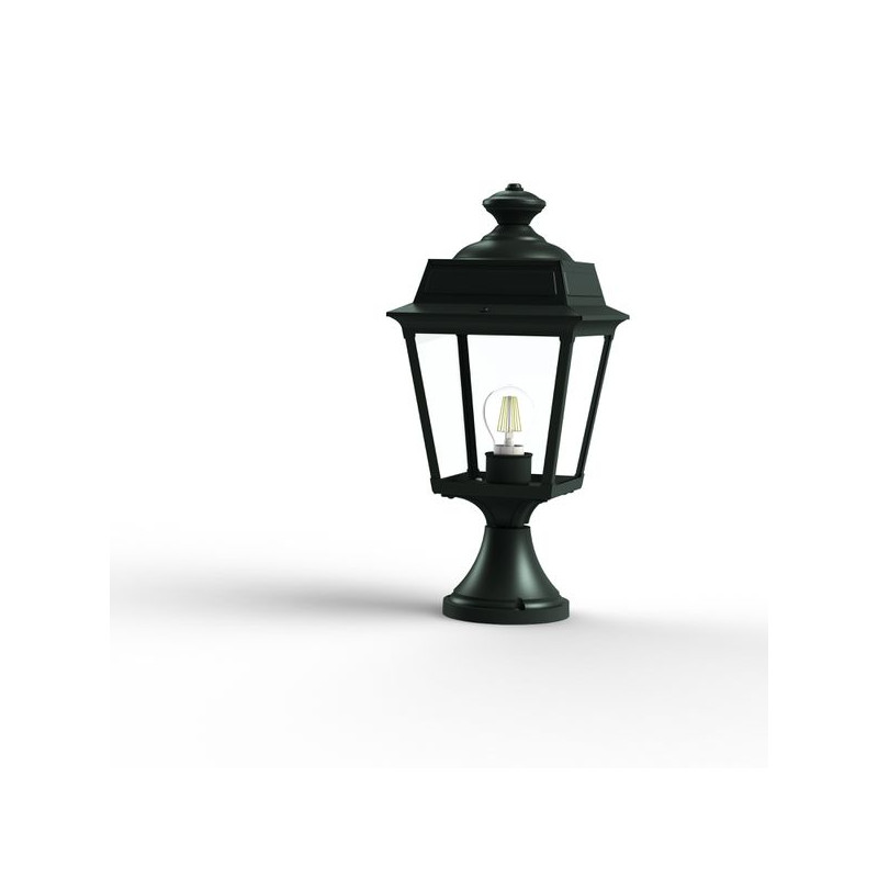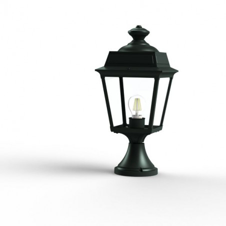 Description: Borne PLACE DES VOSGES TRADITION en aluminium, hauteur 473mm, E27, IP44, classe 1, diffuseurs verre clair. Teinte Gris ardoise 059. Garantie 25 ans anticorrosio