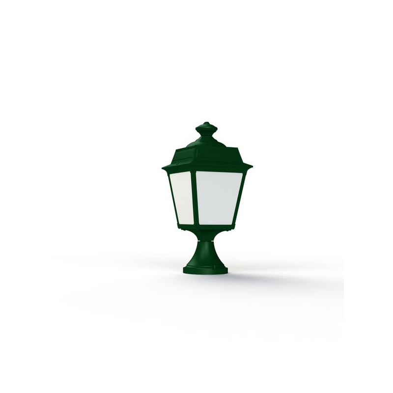 Description: Borne PLACE DES VOSGES TRADITION en aluminium, hauteur 473mm, E27, IP44, classe 1, diffuseurs verre opale. Teinte RAL 6009 Vert sapin 067. Garantie 25 ans antic