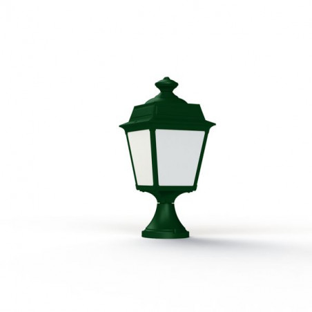 Borne PLACE DES VOSGES TRADITION en aluminium, hauteur 473mm, E27, IP44, classe 1, diffuseurs verre opale. Teinte RAL 6009 Vert sapin 067. Garantie 25 ans antic