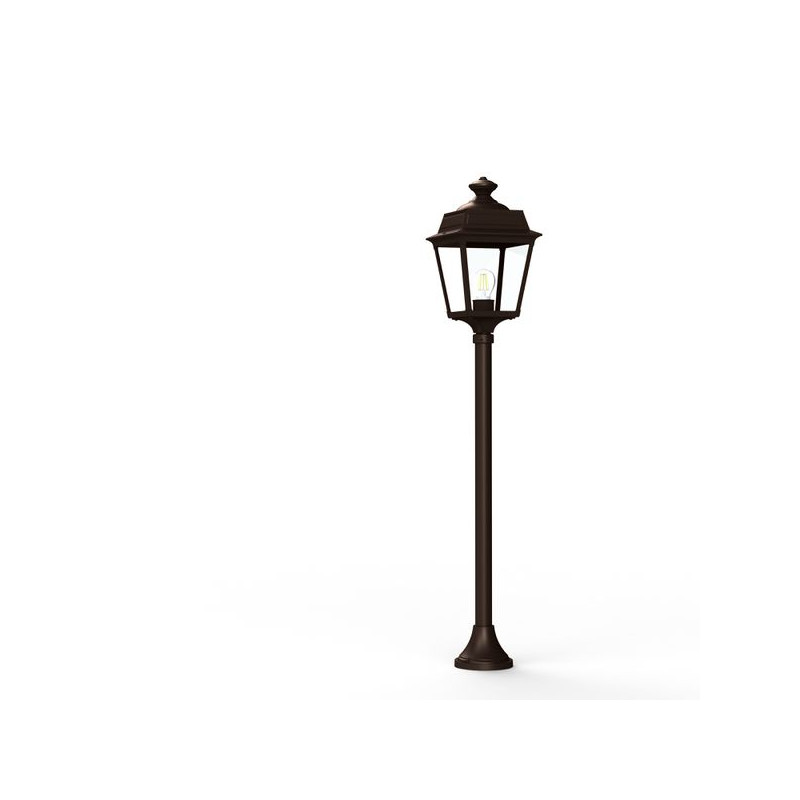 Borne PLACE DES VOSGES TRADITION, hauteur 1172mm, en aluminium, E27, IP44, classe 1, diffuseurs verre clair. Teinte Rouille 046. Garantie 25 ans anticorrosion s