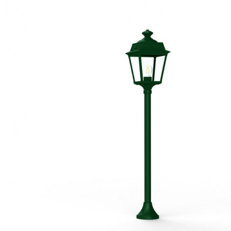Borne PLACE DES VOSGES TRADITION, hauteur 1172mm, en aluminium, E27, IP44, classe 1, diffuseurs verre clair. Teinte RAL 6009 Vert sapin 067. Garantie 25 ans ant