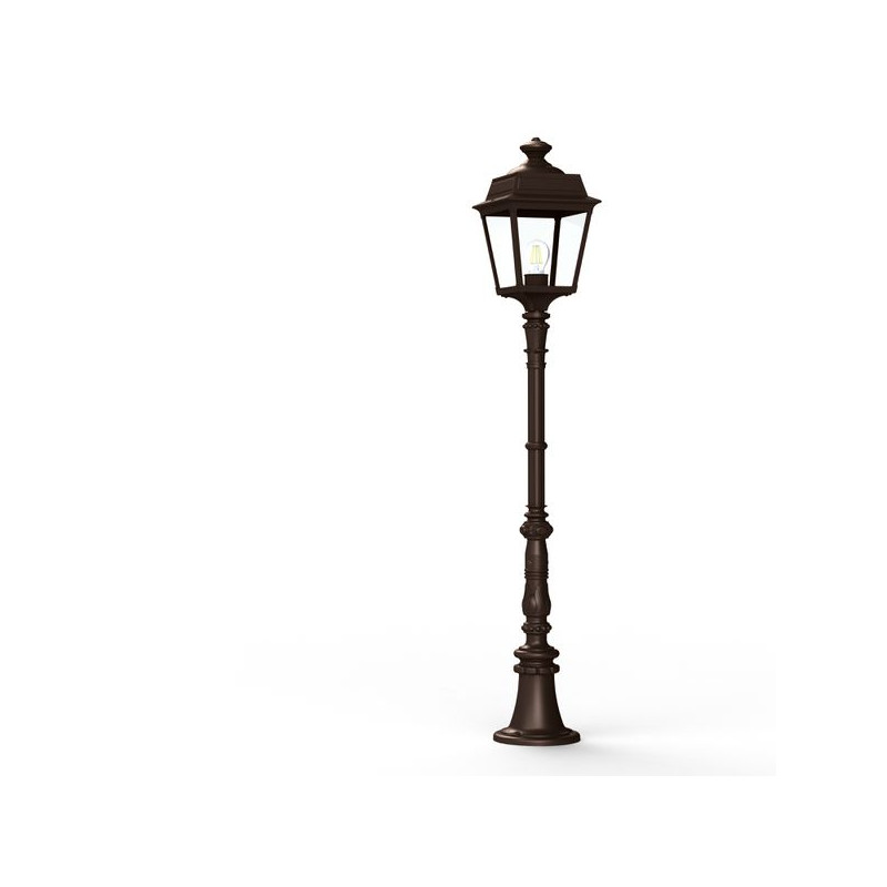 Borne PLACE DES VOSGES TRADITION, hauteur 1296mm, en aluminium, E27, IP44, classe 1, diffuseurs verre clair. Teinte Rouille 046. Garantie 25 ans anticorrosion s