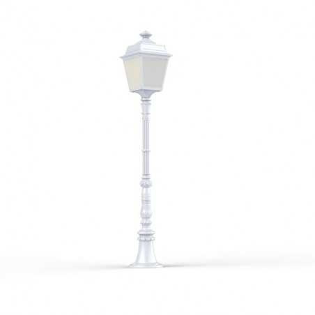 Borne PLACE DES VOSGES TRADITION, hauteur 1296mm, en aluminium, E27, IP44, classe 1, diffuseurs verre opale. Teinte Blanc 001. Garantie 25 ans anticorrosion sur