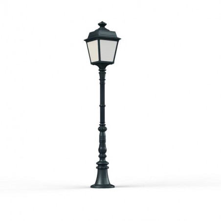 Borne PLACE DES VOSGES TRADITION, hauteur 1296mm, en aluminium, E27, IP44, classe 1, diffuseurs verre opale. Finition Patine vert de gris 008. Garantie 25 ans a