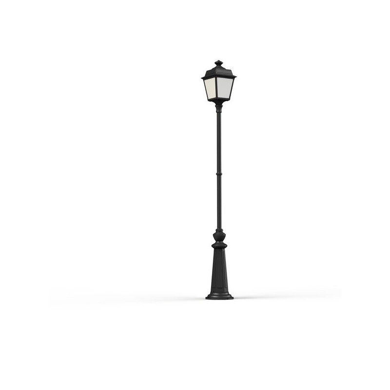 Description: Lampadaire 1 tête PLACE DES VOSGES TRADITION, hauteur 1967mm, en aluminium, E27, IP44, classe 1, diffuseurs verre opale. Teinte RAL 9005 Noir foncé 000. Garanti