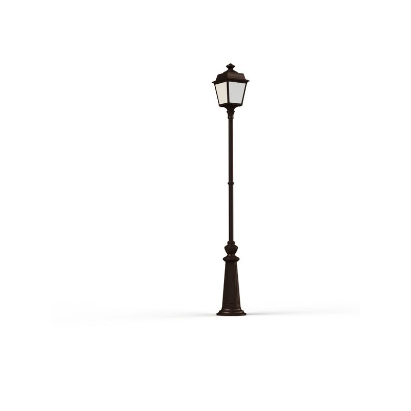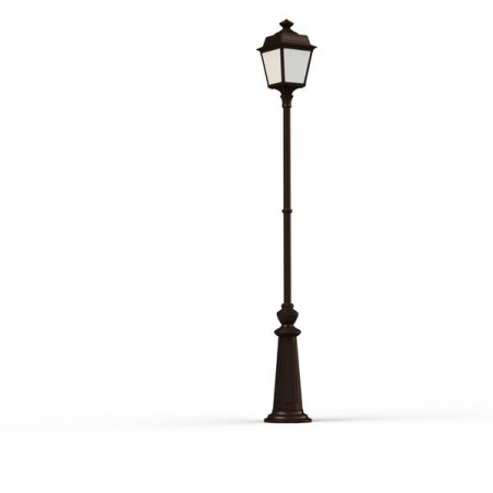 Description: Lampadaire 1 tête PLACE DES VOSGES TRADITION, hauteur 1967mm, en aluminium, E27, IP44, classe 1, diffuseurs verre opale. Teinte Rouille 046. Garantie 25 ans ant