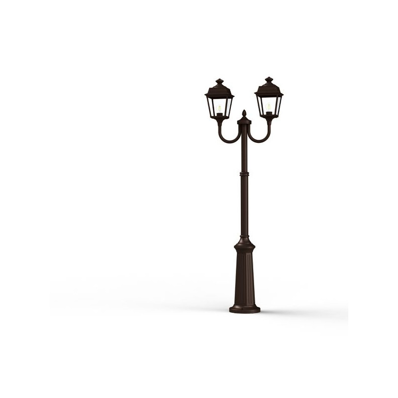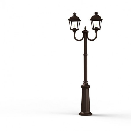 Lampadaire 2 têtes PLACE DES VOSGES TRADITION, hauteur 1977mm, en aluminium, télescopique, E27, IP44, classe 1, diffuseurs verre clair. Teinte Rouille 046. Gara