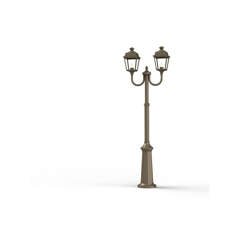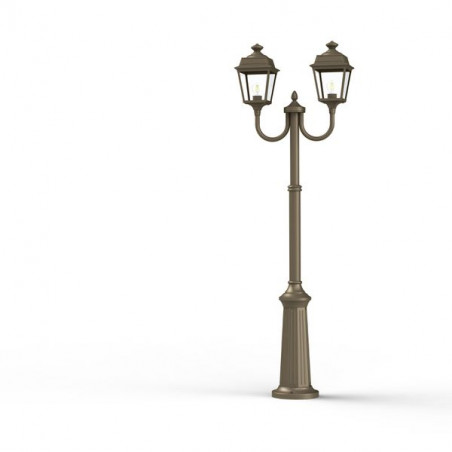 Description: Lampadaire 2 têtes PLACE DES VOSGES TRADITION, hauteur 1977mm, en aluminium, télescopique, E27, IP44, classe 1, diffuseurs verre clair. Teinte Grès 054. Garanti