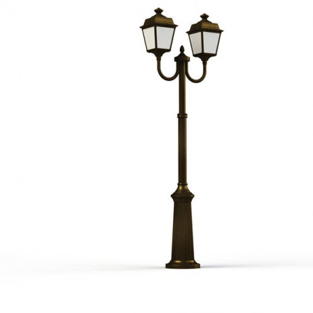 Lampadaire 2 têtes PLACE DES VOSGES TRADITION, hauteur 1977mm, en aluminium, télescopique, E27, IP44, classe 1, diffuseurs verre opale. Finition Patine dorée 00