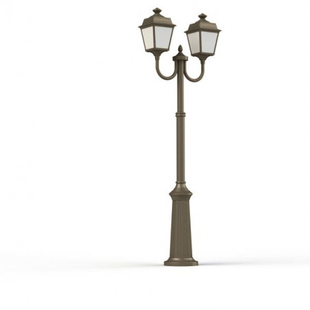 Description: Lampadaire 2 têtes PLACE DES VOSGES TRADITION, hauteur 1977mm, en aluminium, télescopique, E27, IP44, classe 1, diffuseurs verre opale. Teinte Grès 054. Garanti