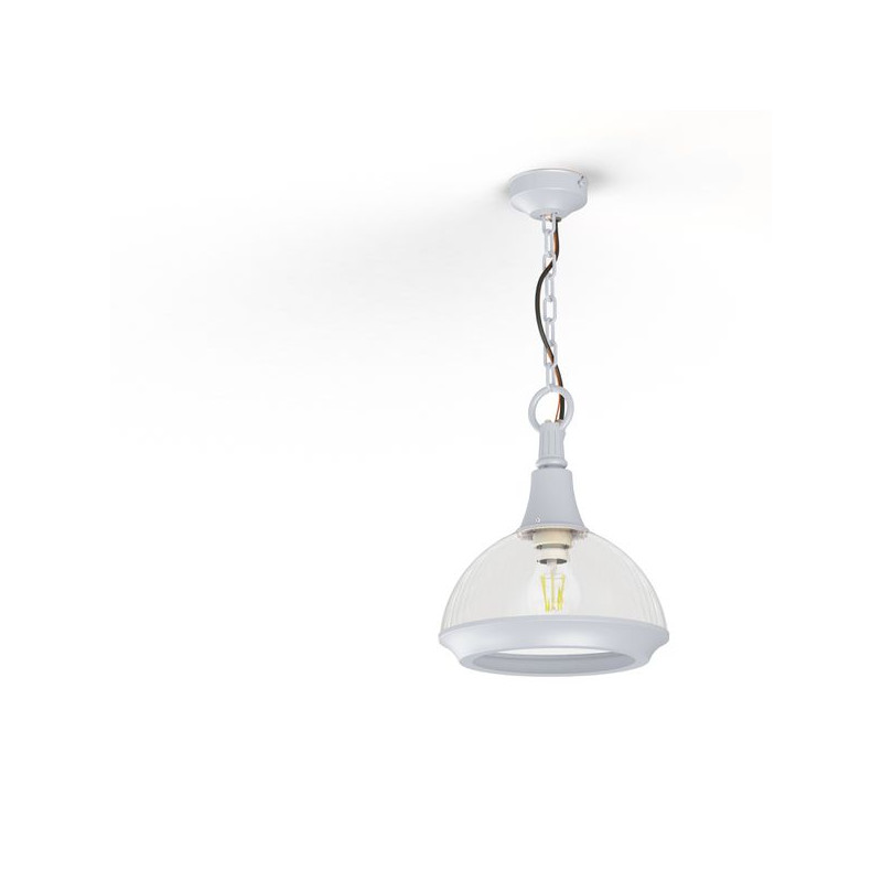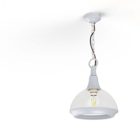 Suspension chaîne BOLERO en aluminium, E27, IP23, classe 1, diffuseur verre clair prismatique. Teinte Blanc 001. Garantie 25 ans anticorrosion sur l'aluminium