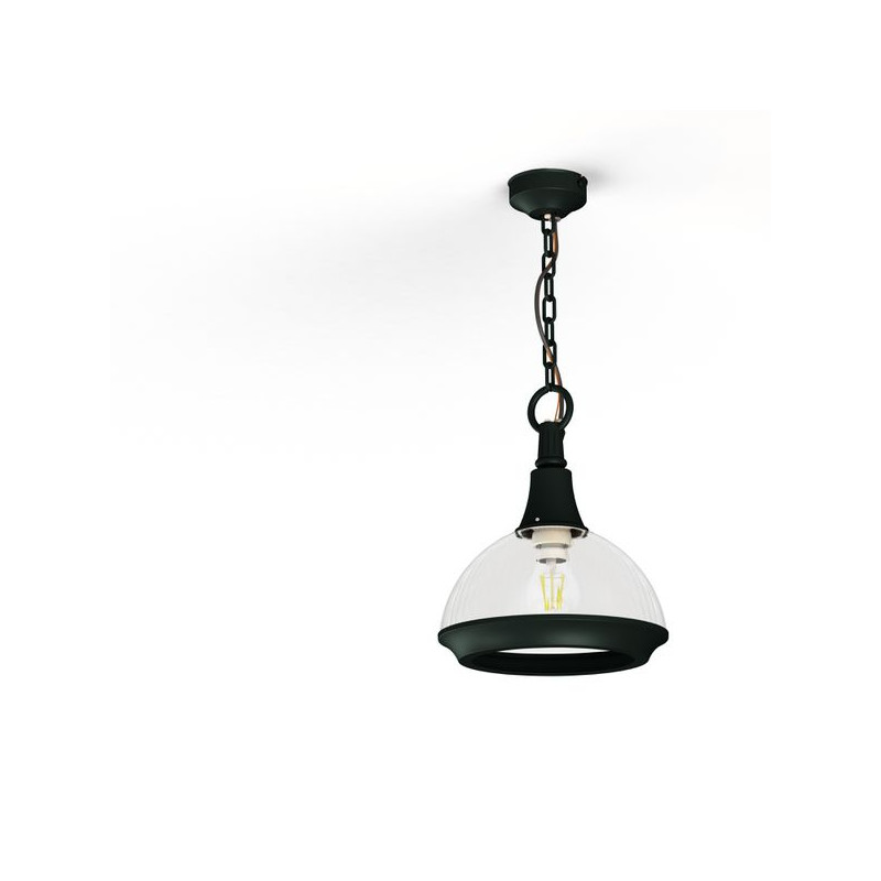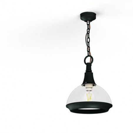 Description: Suspension chaîne BOLERO en aluminium, E27, IP23, classe 1, diffuseur verre clair prismatique. Teinte Gris ardoise 059. Garantie 25 ans anticorrosion sur l'alum