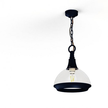 Suspension chaîne BOLERO en aluminium, E27, IP23, classe 1, diffuseur verre clair prismatique. Teinte RAL 5011 Bleu acier 065. Garantie 25 ans anticorrosion sur