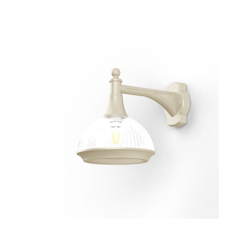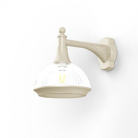 Applique descendante droite BOLERO en aluminium, E27, IP23, classe 1, diffuseur verre clair prismatique. Teinte Sable 053. Garantie 25 ans anticorrosion sur l'a