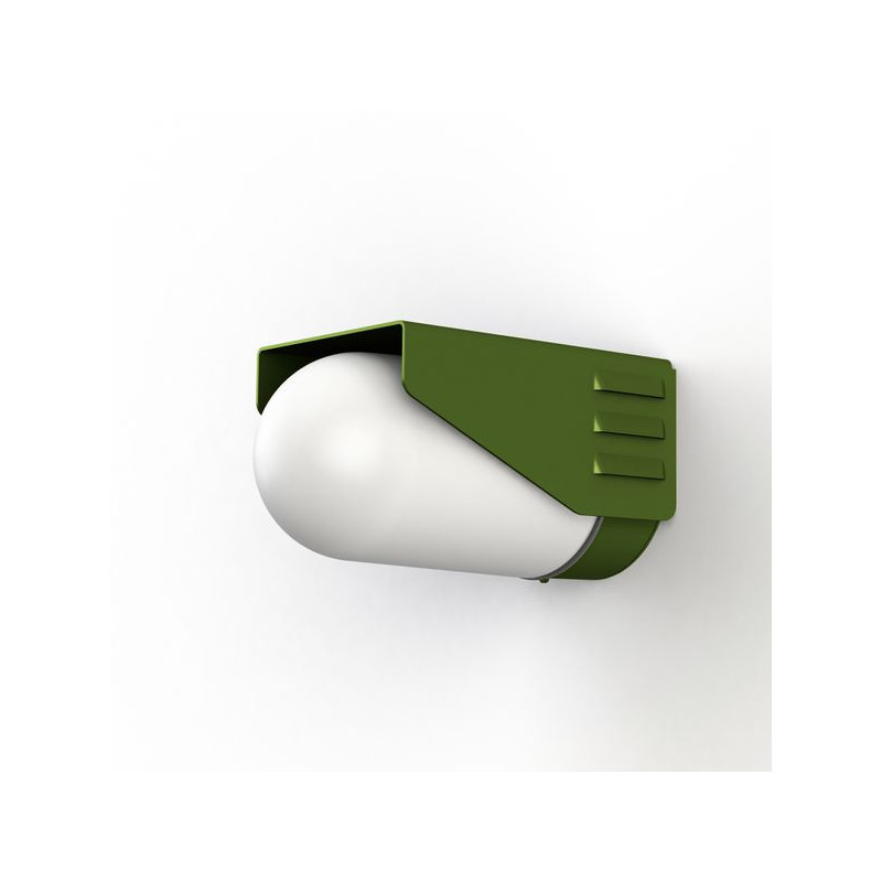 Applique RP195, hauteur 131mm, en aluminium, E27, IP65, classe 2, diffuseur verre dépoli. Teinte RAL 6025 Vert fougère 109. Garantie 25 ans anticorrosion sur l'