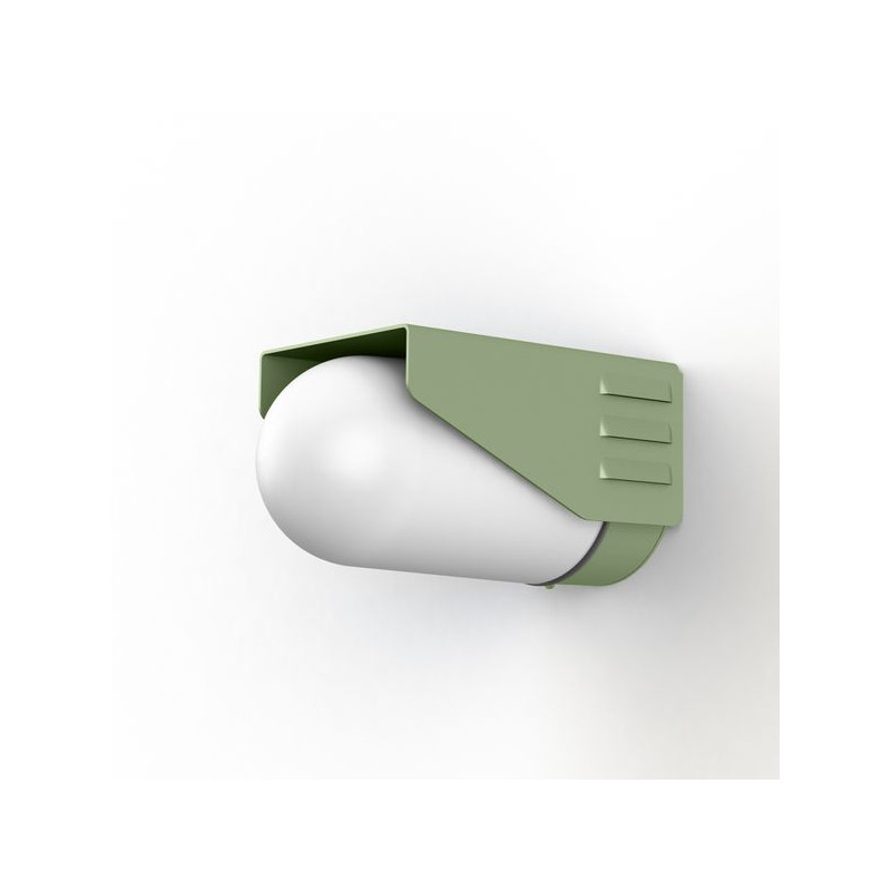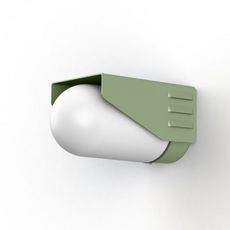 Applique RP195, hauteur 131mm, en aluminium, E27, IP65, classe 2, diffuseur verre dépoli. Teinte RAL 6021 Vert pâle 133. Garantie 25 ans anticorrosion sur l'alu
