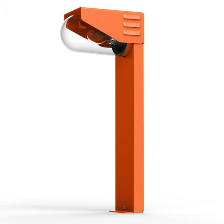 Description: Borne RP195, hauteur 602mm, en aluminium, E27, IP65, classe 2, diffuseur verre clair. Teinte RAL 2004 Orangé pur 014. Garantie 25 ans anticorrosion sur l'alumin