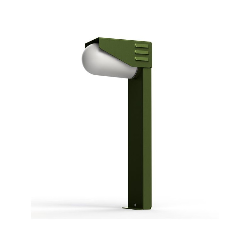 Borne RP195, hauteur 602mm, en aluminium, E27, IP65, classe 2, diffuseur verre dépoli. Teinte RAL 6025 Vert fougère 109. Garantie 25 ans anticorrosion sur l'alu