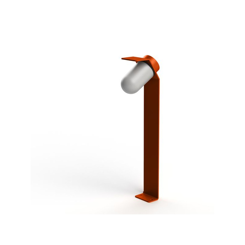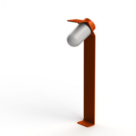 Description: Borne SHERLOCK, hauteur 710mm, en aluminium, E27, IP65, classe 2, diffuseur verre opale. Teinte RAL 2004 Orangé pur 014. Garantie 25 ans anticorrosion sur l'alu