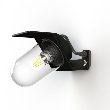 Applique SHERLOCK, hauteur 208mm, en aluminium, E27, IP65, classe 2, diffuseur verre clair. Teinte RAL 7021 Gris noir 107. Garantie 25 ans anticorrosion sur l'a