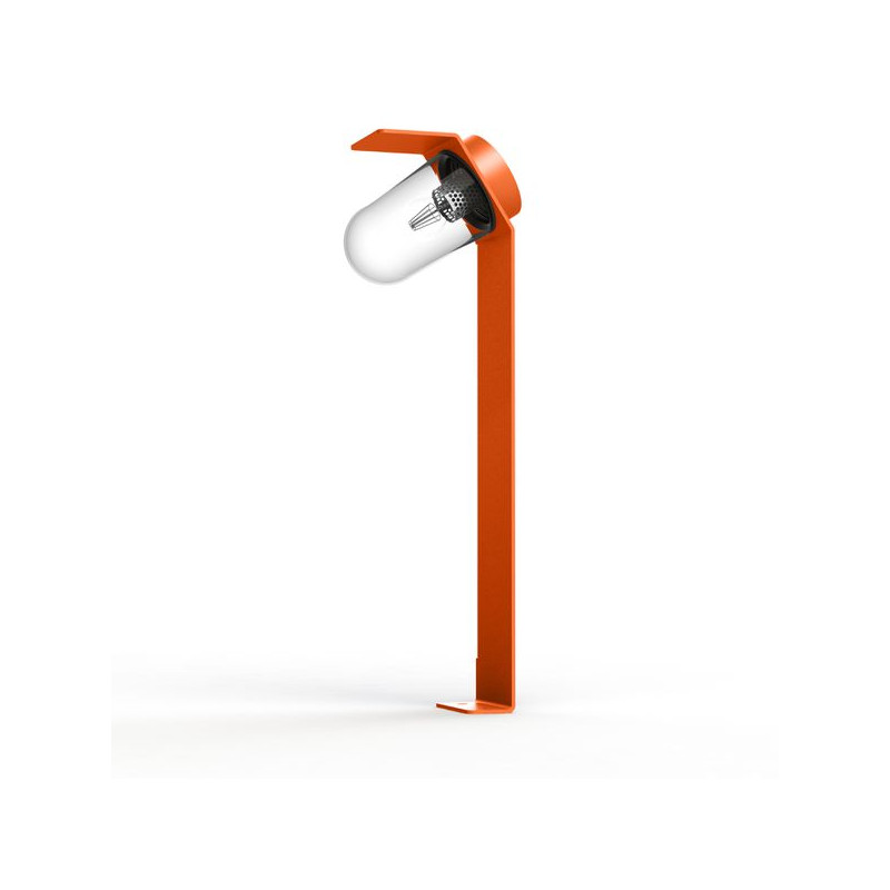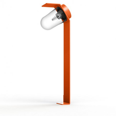 Description: Borne SHERLOCK, hauteur 771mm, en aluminium, E27, IP65, classe 2, diffuseur verre clair. Teinte RAL 2004 Orangé pur 014. Garantie 25 ans anticorrosion sur l'alu