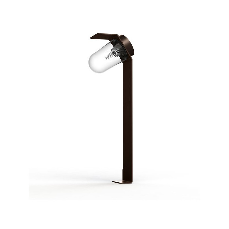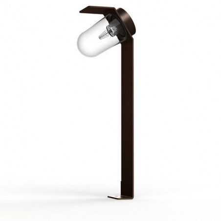 Description: Borne SHERLOCK, hauteur 771mm, en aluminium, E27, IP65, classe 2, diffuseur verre clair. Teinte Rouille 046. Garantie 25 ans anticorrosion sur l'aluminium