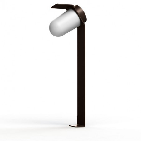 Description: Borne SHERLOCK, hauteur 771mm, en aluminium, E27, IP65, classe 2, diffuseur verre opale. Teinte Rouille 046. Garantie 25 ans anticorrosion sur l'aluminium