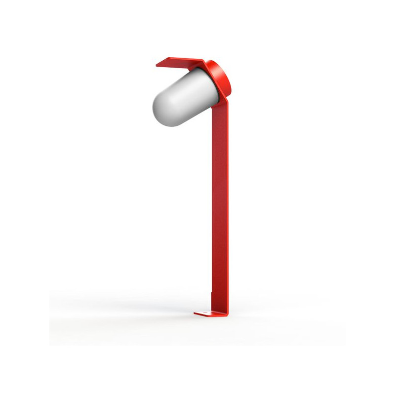 Description: Borne SHERLOCK, hauteur 771mm, en aluminium, E27, IP65, classe 2, diffuseur verre opale. Teinte RAL 3020 Rouge signalisation 056. Garantie 25 ans anticorrosion