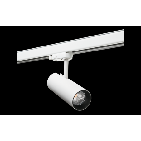 Description: Rail, indoor opbouw, mat wit, 7W, 3000K. Dimbaar fase afsnijding. Materiaal: aluminium. Klasse II, IP20, bundel 40 graden, Ra>98, SDCM 2