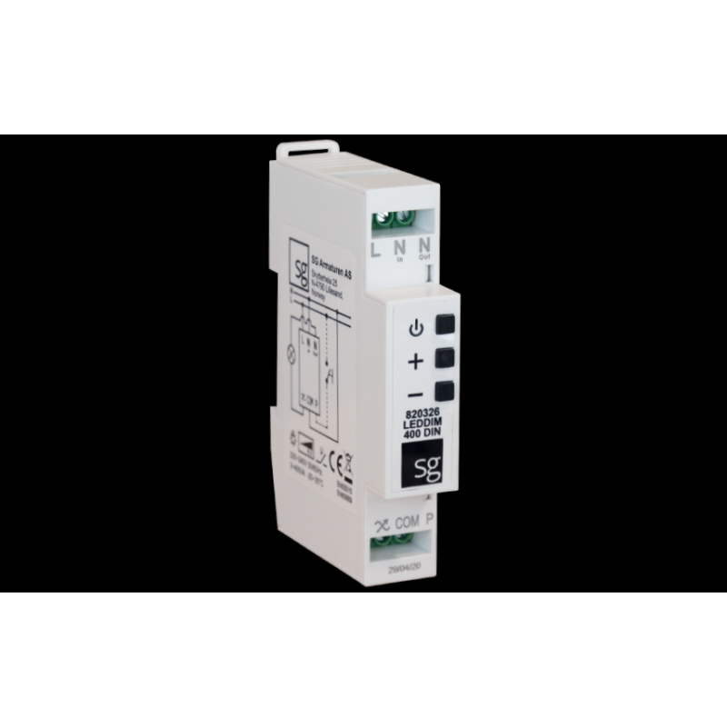 Emballage: 1Marque: SG LightingRéférence: 820326EAN: 7021988203262Libellé: LEDDim 400 DINDescription: LEDDim 400 DIN 400VA. mat.: polyamide